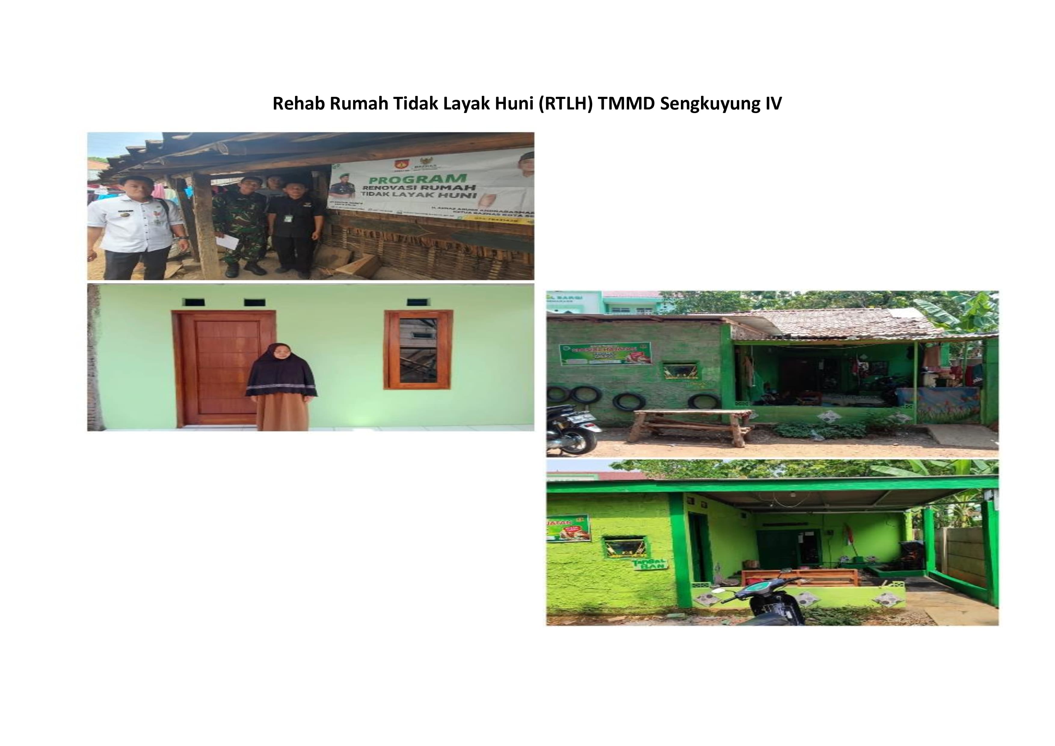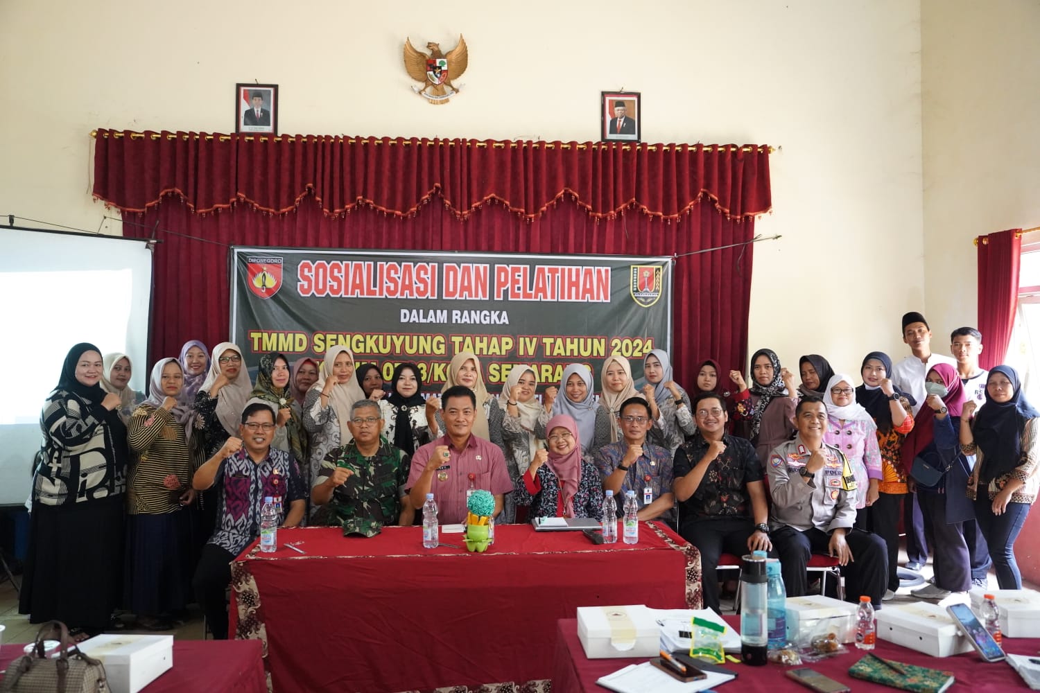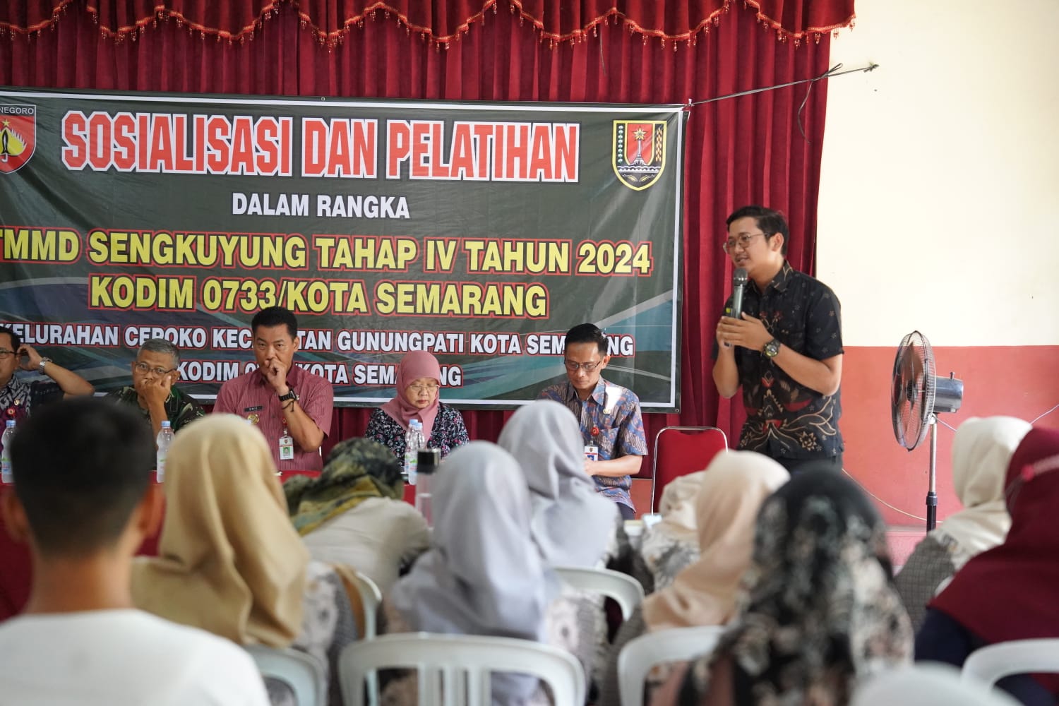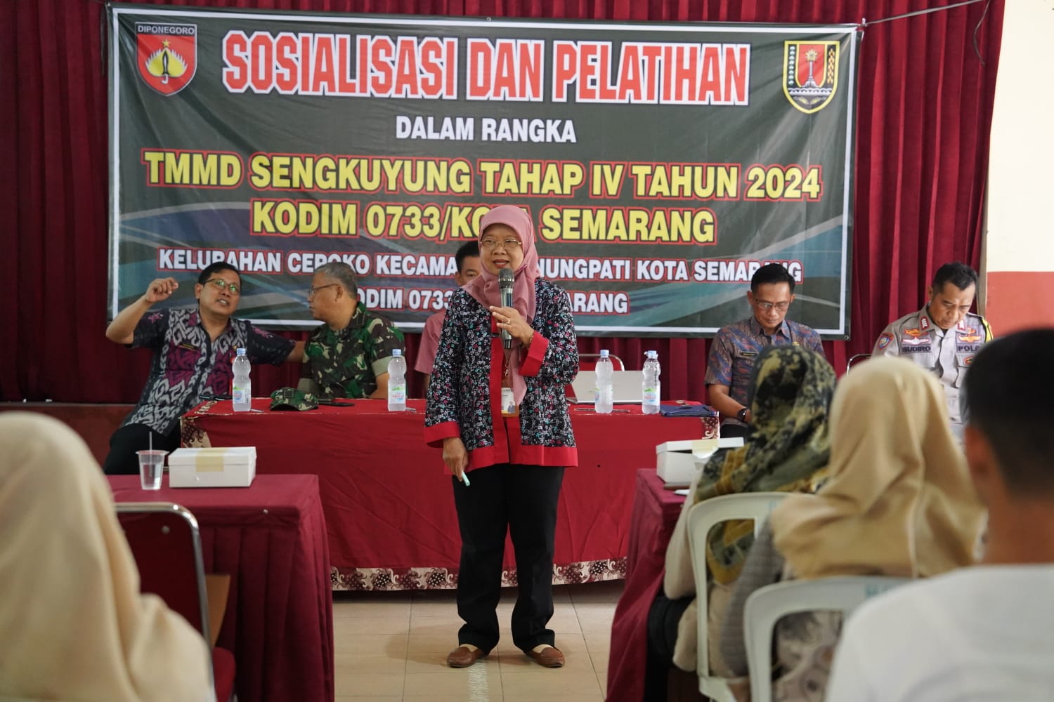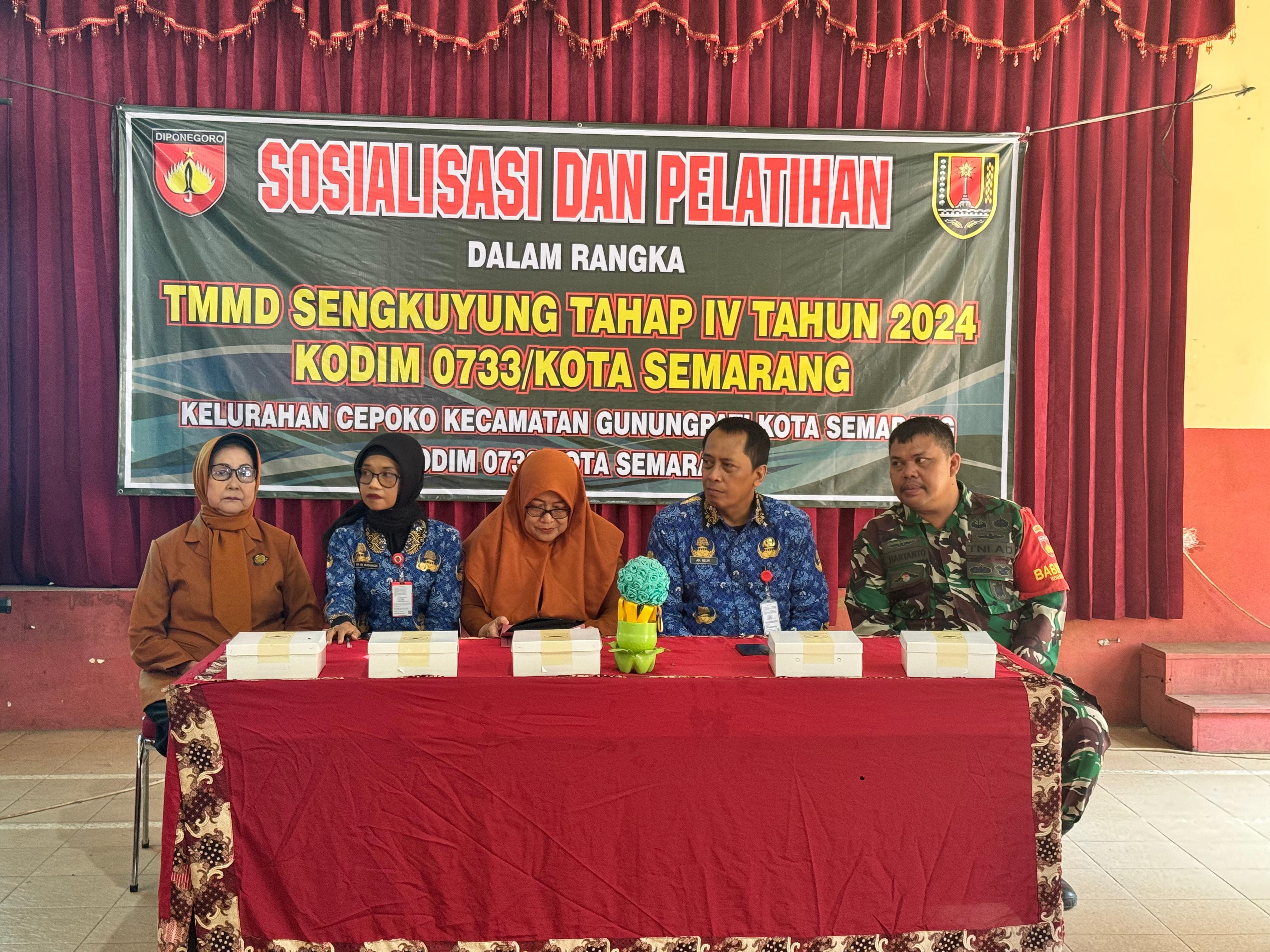 TMMD Sengkuyung IV dilaksanakan sesuai dengan surat Sekretaris Daerah Provinsi Jawa Tengah Nomor 400.10/216 tanggal 25 September 2024 perihal Pelaksanaan TMMD Reguler ke-122 dan Sengkuyung Tahap IV TA 2024 pelaksanaan pembukaan pada tanggal 2 Oktober 2024 dan penutupan TMMD pada tanggal 31 Oktober 2024 ditandai dengan penandatanganan Naskah Serah Terima Program TMMD Sengkuyung IV oleh Komandan Kodim selaku Dansatgas TMMD dan Walikota. Secara umum sasaran fisik TMMD Sengkuyung Tahap IV TA. 2024 yang dilaksanakan di wilayah Kodim 0733 Kota Semarang yaitu Kelurahan Cepoko Kecamatan Gunungpati telah selesai dilaksanakan 100% sesuai dengan waktu yang telah ditentukan. Sebelum pelaksanaan TMMD terlebih dahulu dilaksanakan kegiatan Pra TMMD dengan kegiatan pembersihan jalan yang menjadi sasaran pembuatan talud, crossing jalan penghubung, dan pemugaran rumah yang menjadi sasaran RTLH, penyiapan lokasi posko TMMD serta sarana prasarana yang dibutuhkan dalam pelaksanaan kegiatan TMMD Sengkuyung Tahap IV TA. 2024. Adapun rincian sasaran fisik sebagai berikut : • Talud Jalan Penghubung RW 1 dan RW 3 (Bankeu Provinsi) : 0,3 m x 1,7 m x 95 m • Crossing Jalan Penghubung RW 1 dan RW 3 (APBD Kota Semarang): 2,5 m x 1 m • Talud Jalan Penghubung RW 1 dan RW 3 (APBD Kota Semarang) : 0,3 m x 1,7 m x 25 m • Rehab Rumah Tidak Layak Huni (BAZNAS Kota Semarang) : 15 Unit • Pembangungan Tandon Air Bersih (PDAM) : 1 paket Selain kegiatan fisik, dalam TMMD Sengkuyung Tahap IV juga menyelenggarakan kegiatan non fisik yang didukung oleh OPD/instansi dilingkungan Pemerintah Kota Semarang.