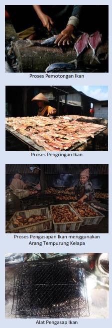 Pengolahan ikan segar (tongkol, patin, pari, manyung) menjadi ikan asap.